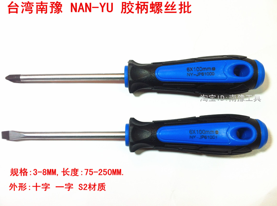 Taiwan imported Nanyu rubber handle screwdriver cross character 3 6 *45-250 long change cone screwdriver