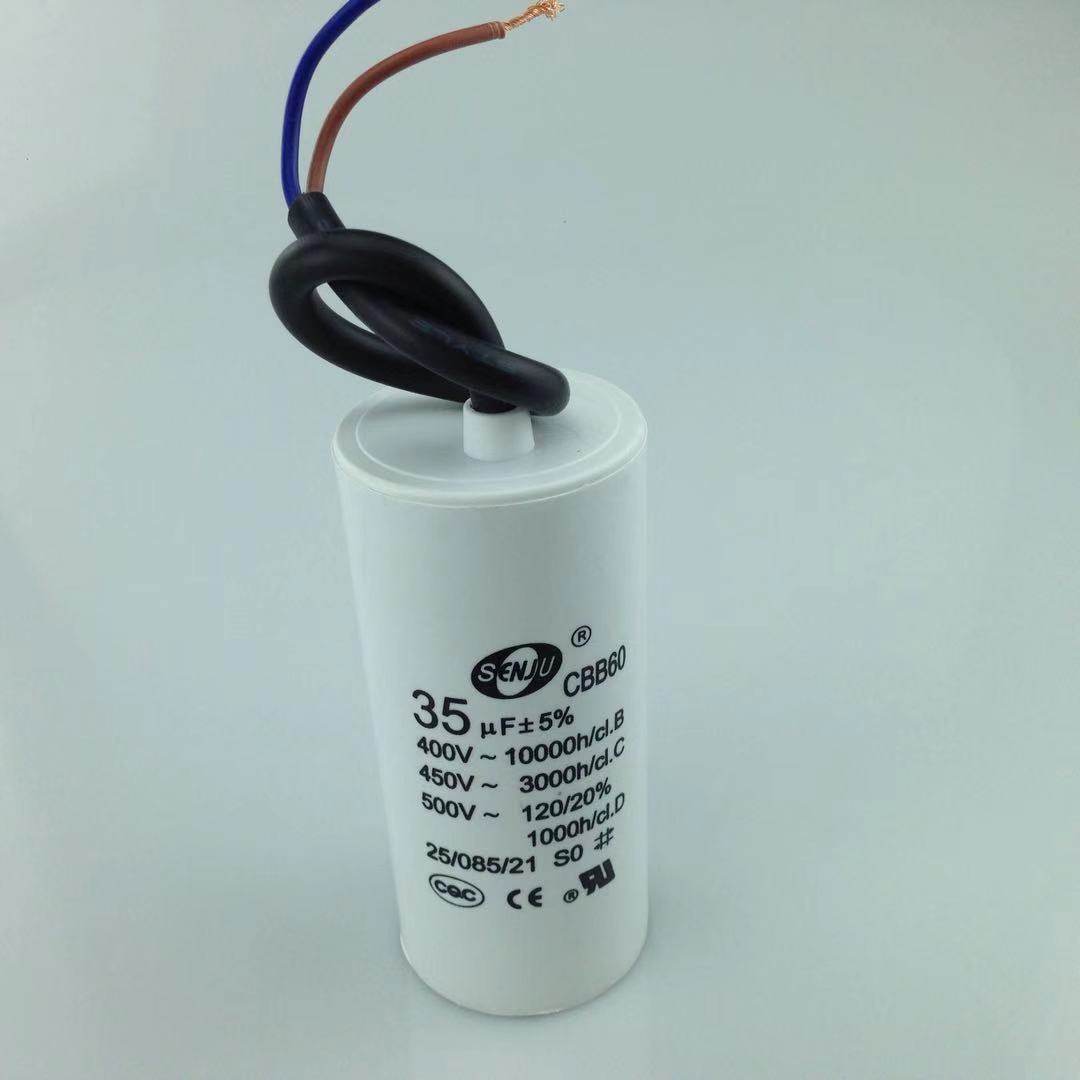 CBB60 motor starting capacitor 35uf450V with wire lead starting capacitor washing machine capacitor 450V35uf