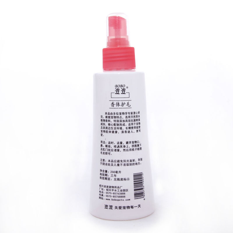 Bobo Pet Perfume 200ml Antibacterial Deodorant Fragrance Body Hair Care Dog Perfume Pet Products Deodorization Deodorization