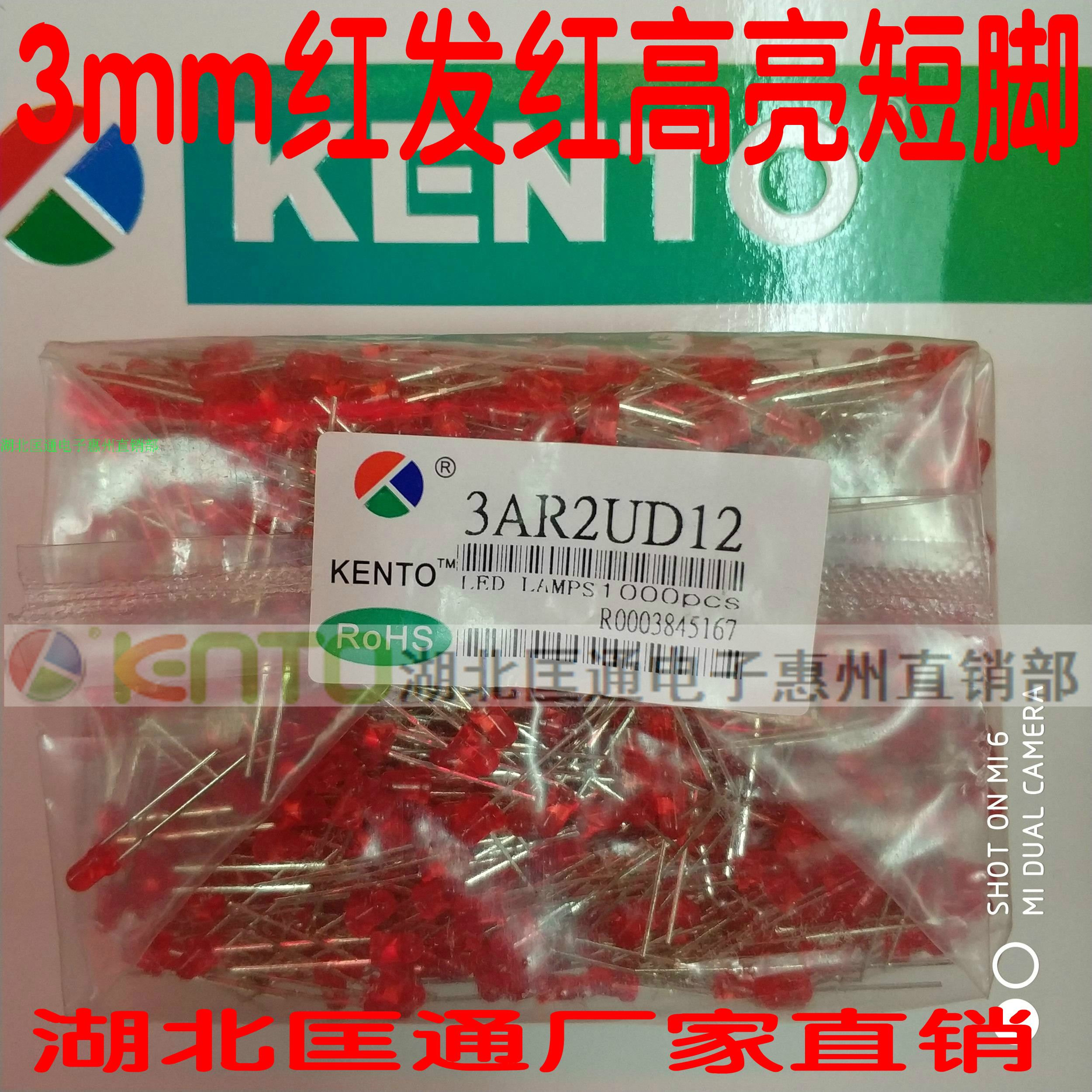 Quantong 3mm red red high bright short foot bead 3AR2 UD12 straight plug red LED luminating tube F3 fog high red