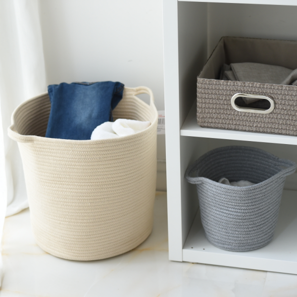 Cotton thread containing basket Woven Basket Dirty Laundry Barrel Snacking Frame Toy Box Cloth Art Baby Inside Clothes Miscellaneous Basket Laundry Basket