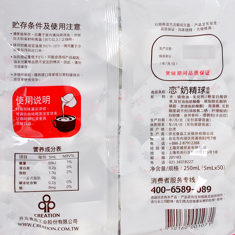 Taiwanese Romance coffee milk partner Cream Balls Cream Balls Coffee Milk FRESH MILK Milk Sperm 5ml * 50 grains