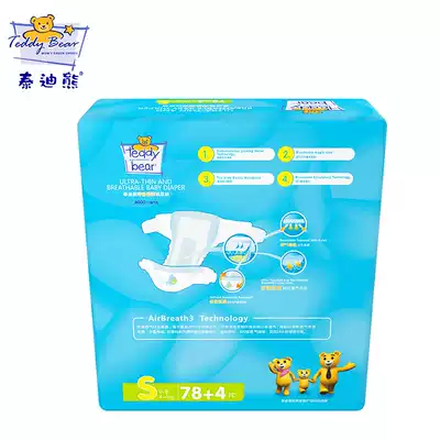 Teddy bear diapers extra thin newborn baby diapers Newborn summer ultra-thin breathable diapers S size 82 pieces