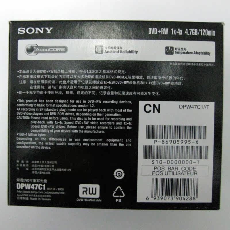 sony dvd rw monolithic pack 1-4X