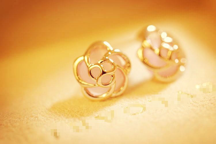 Korea Korean version Retro Roman hollow trumpet rose flower opal crystal ear pin earrings