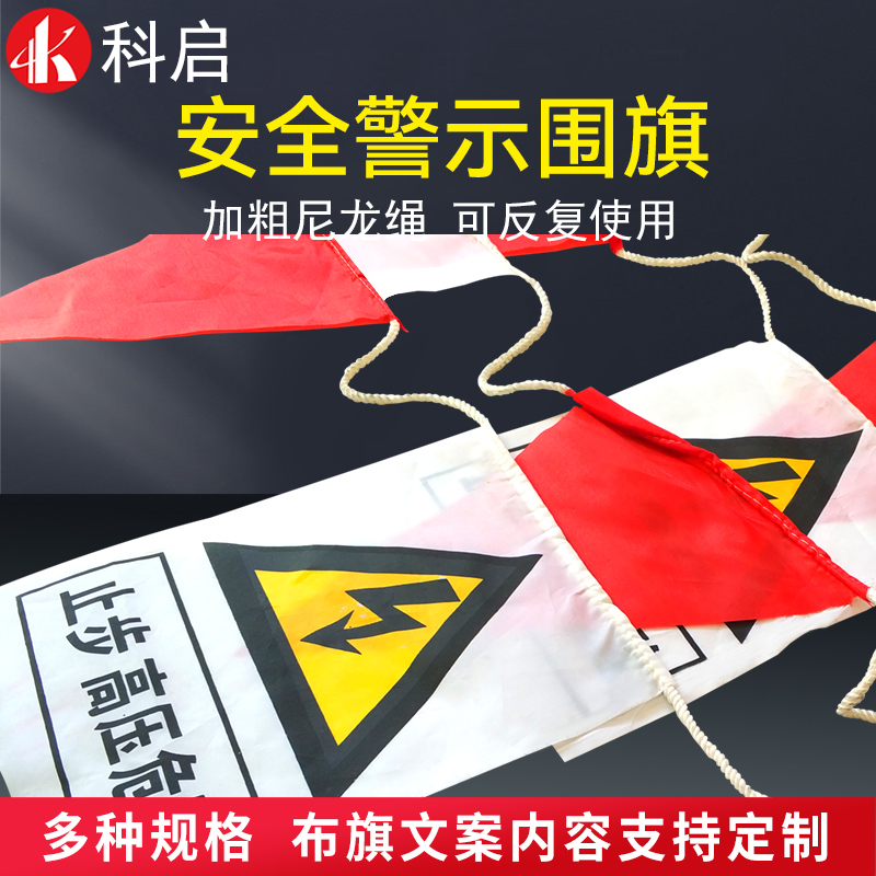 Power Safety Containment Flag Safety Red White Flag Colored Walled Flag Rope Cloth Banner Road Construction Triangle Warning Flag Cordon
