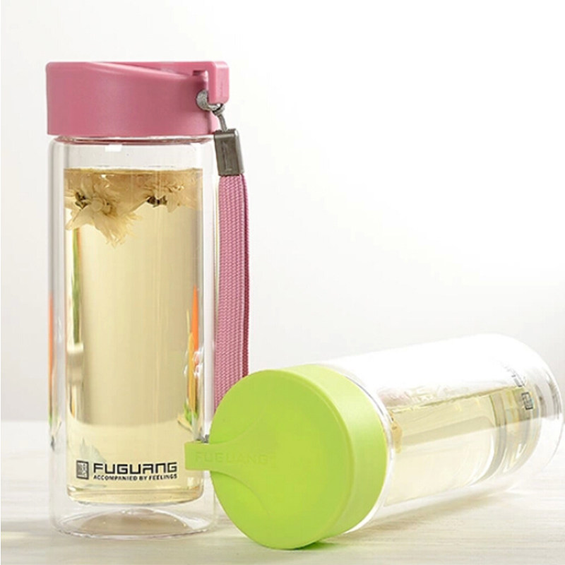 Fuguang double glazed glass cup with lid anti-leakage cup creative handle portable water glass female infus tea cup gift custom cup