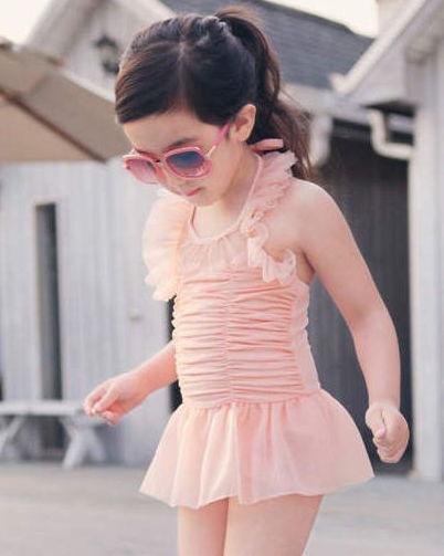 Children's swimsuit girl swimsuit Korean version of one-piece dress parent-child dress mother and daughter baby send swimming cap Little Princess swimsuit
