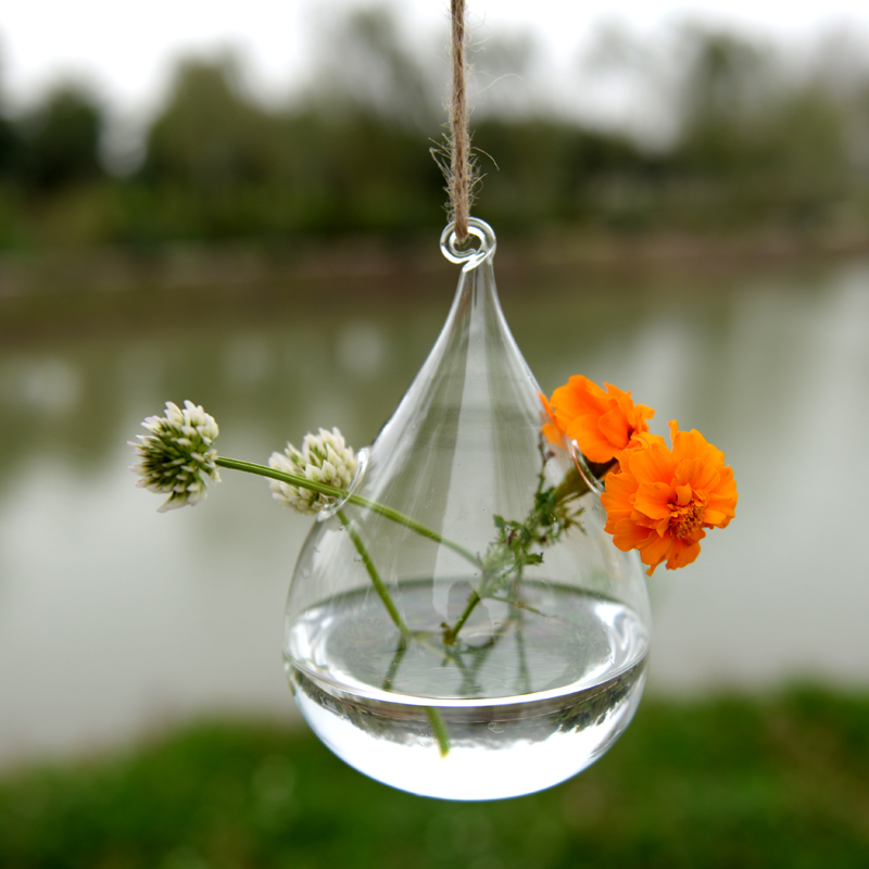 Creative European-style drop-type glass vase suspended transparent vase fashion Home Accessories Creative Water Pewter