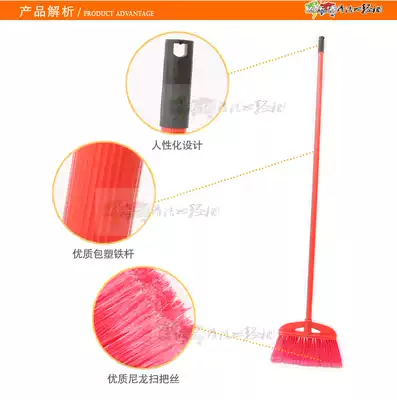 Long-handled nylon plastic broom Home hotel property cleaning nylon silk broom Red broom