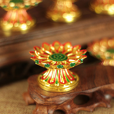 Buddhist supplies gold-plated painted Lotus butter lamp holder candle lamp holder 7 Buddha lamp lamp holder bond price