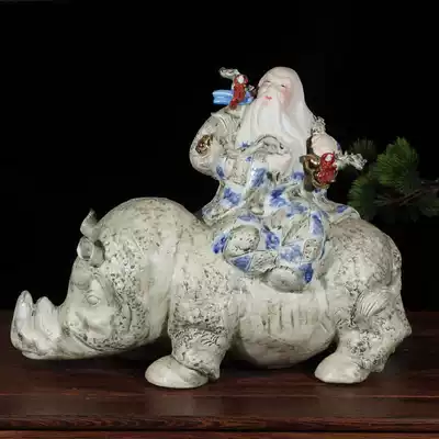Jingdezhen Laozi out of the customs porcelain figure sculpture ornaments Laozi riding Buffalo three-dimensional porcelain sculpture furnishings