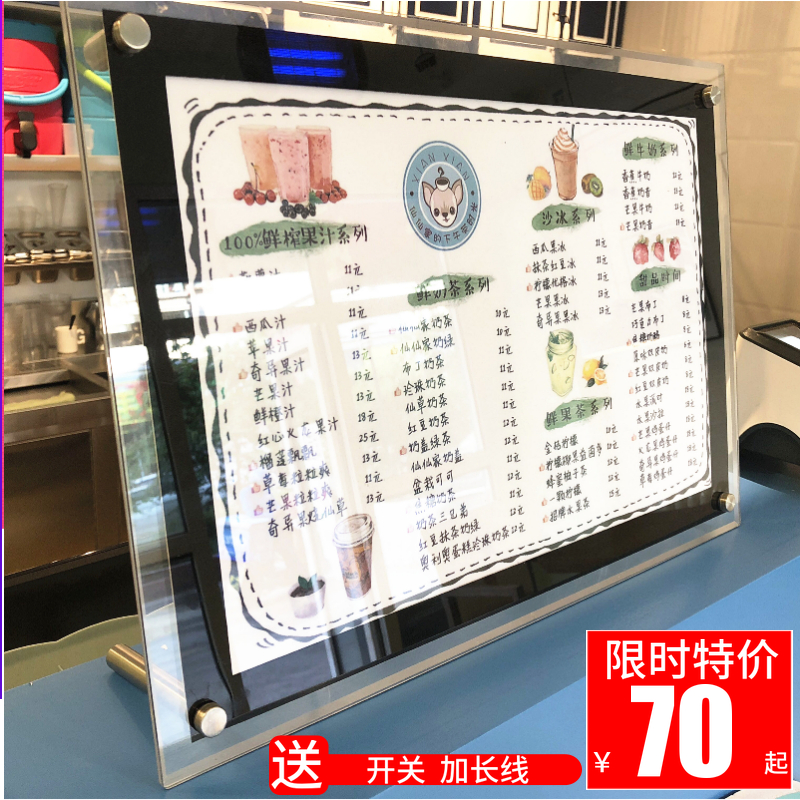 LED price list Crystal acrylic ordering Dining Card Milk Tea Shop Ultra Slim BRAND BAR Table Advertising Menu Light Box