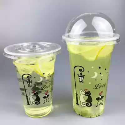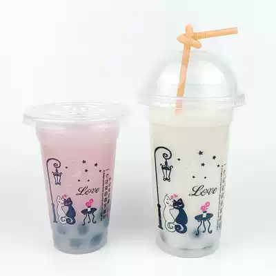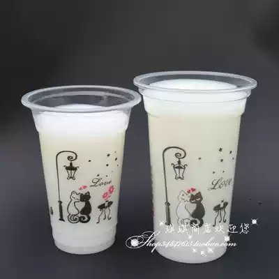 Disposable milk tea cup plastic cup soymilk cup porridge cup juice drink cup 600 Happy Cat 450ml custom