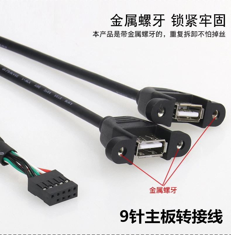 Main board 9 needle turn USB2 0 Two-port bezel line with screw hole Main board 9Pin turn USB2 0 switching line plus coarse