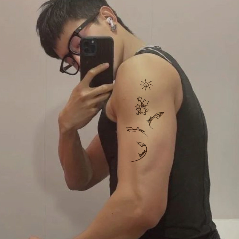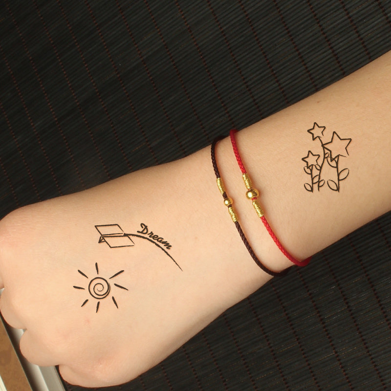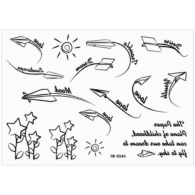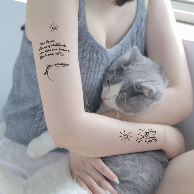 Small fresh personality cute arm small plane English letter sun flower tattoo sticker waterproof and durable K044
