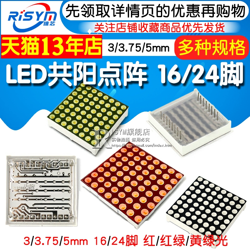 Highlight 8 * 8LED lattice 3MM highlight red light red green color green light 8 16 24 24 5MM Co-yang