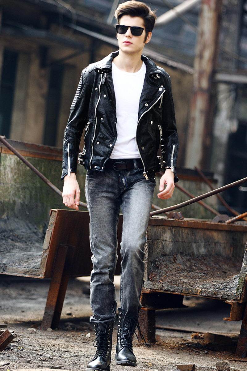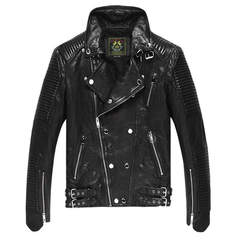 Trendy men's locomotive dermis leather clothing male teen to fix Europe and America Hainen Leisure Sheep leather man jacket