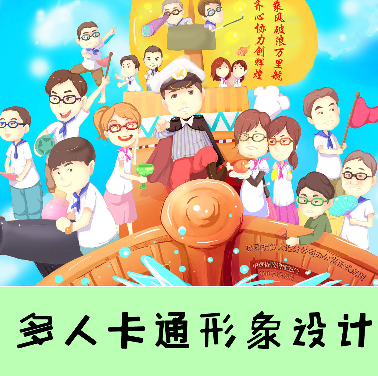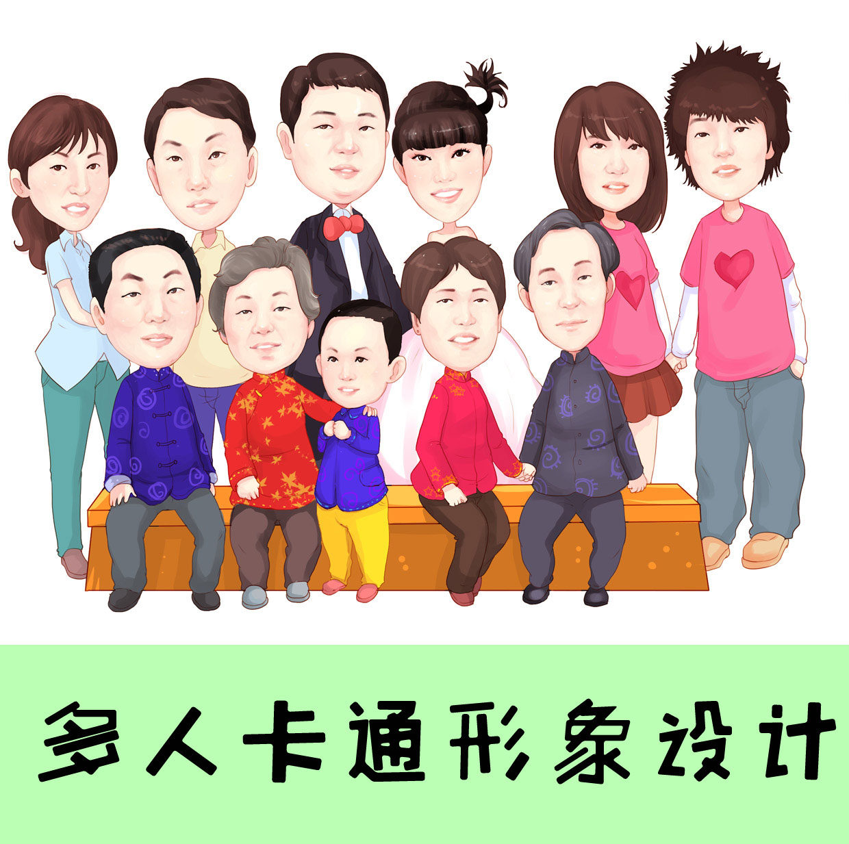 Multi-person cartoon image design comic design comic collective photo Q version comic team Comics