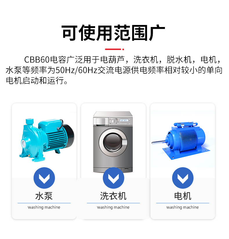 CBB60 Washing Machine Capacitor 345681012141520 UF Dry Dry Dewatering Pump Start Operation