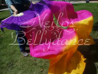 Neilos professional belly dance silk fan long silk dance fan purple rose orange 1 8m * 0 9m