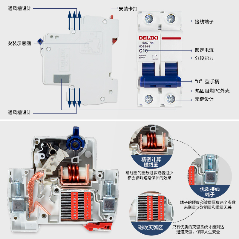 Delixi circuit breaker air switch 1p isolation 3p small air open dz47 household 63a total switch 2p three-phase