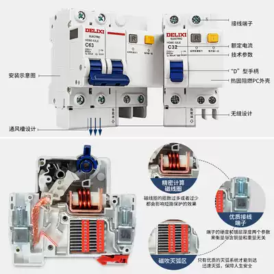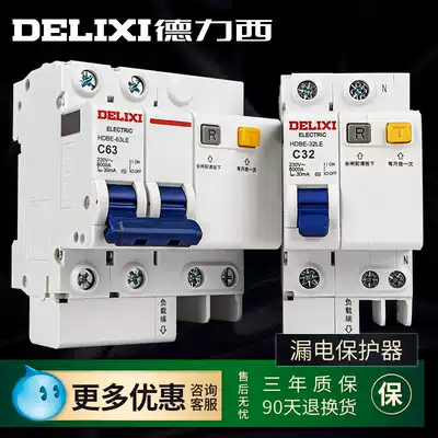 Delixi leakage power failure protector Circuit breaker Air switch Household 2p air conditioner with overload leakage protection 1p n