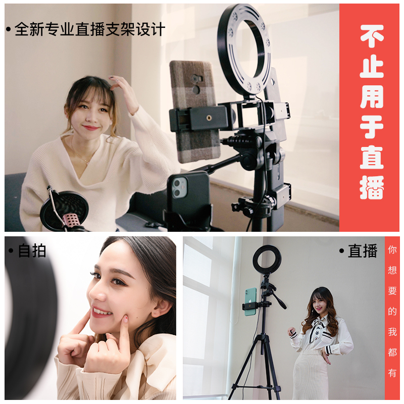 3520 tripod three position 3 mobile phone clip hose microphone microphone sound card tray Bluetooth 16cm ring light