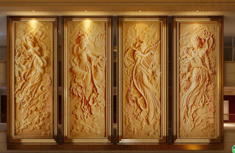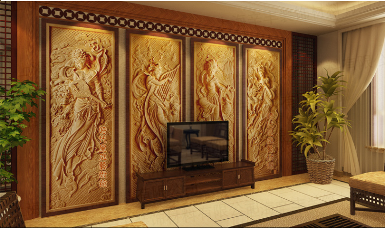 Sand rock relief mural background wall decorative characters carved sand rock background three-dimensional mural flying figure Chinese style