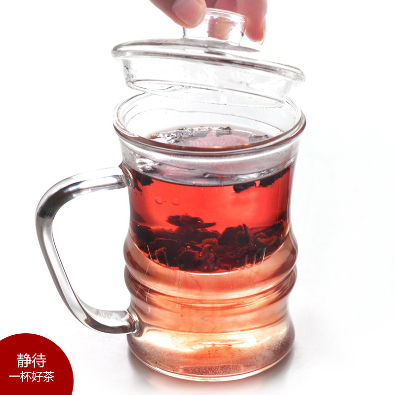 Ttime Tea Top Glass Tea Cup with cover filter inner cholesterol tea leakage resistant high temperature flower teacup Office teacup