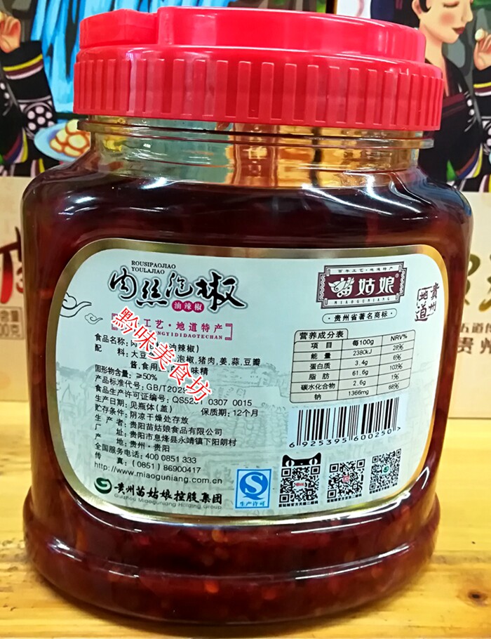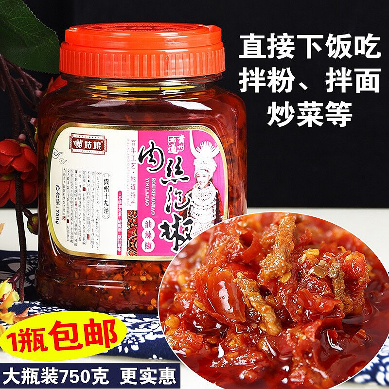 Guizhou specie Miao Miao girl meat Silk Pepper Oil Chili Peppery sauce 750g Oil Hot Chili Peppers Pepper Sauce oil Peppers