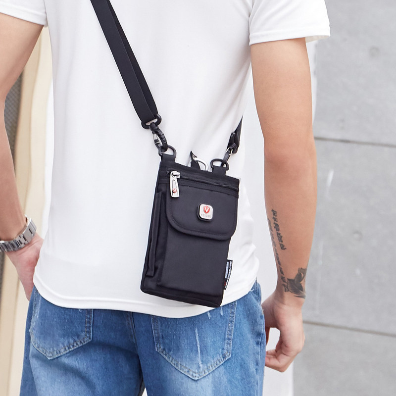 Men's shoulder bag cross cross small satchel multifunctional wear belt mobile phone running bag canvas hanging bag sports mini backpack