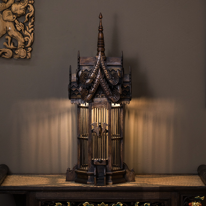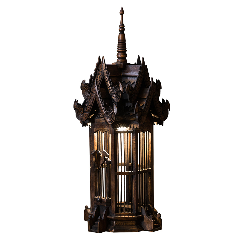 Southeast Asian Inn Club Lighting Table Lighting Soliwood Creative Bird Cage Floor Lamp New Chinese Renaissance Lamp