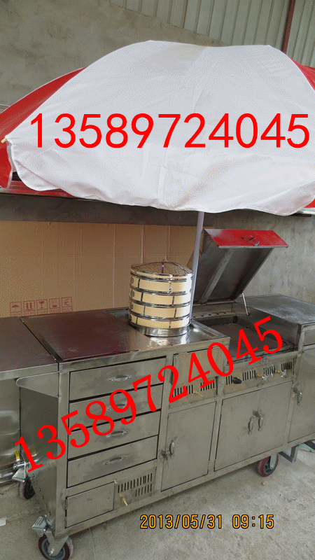 Breakfast car Breakfast engineering special breakfast car Snack car with parasol cage drawer stainless steel breakfast car