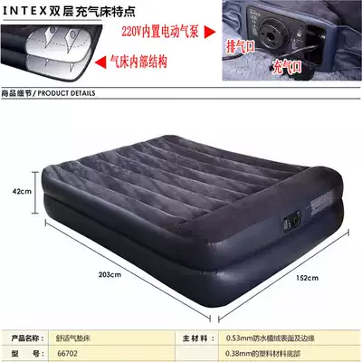 American INTEX 66702 built-in original electric pump double-layer deep blue inflatable bed luxury flocking PVC inflatable mattress