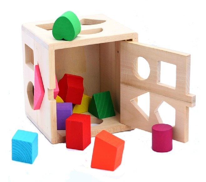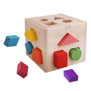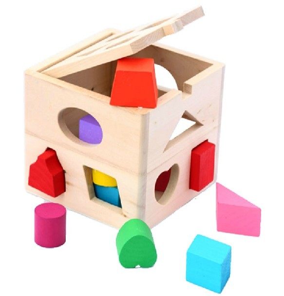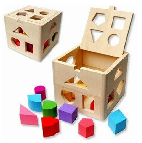 Montessori Early Childhood Teaching Aids Children 1-2-3 years old pair building blocks thirteen holes geometric intelligence shape box wooden toys