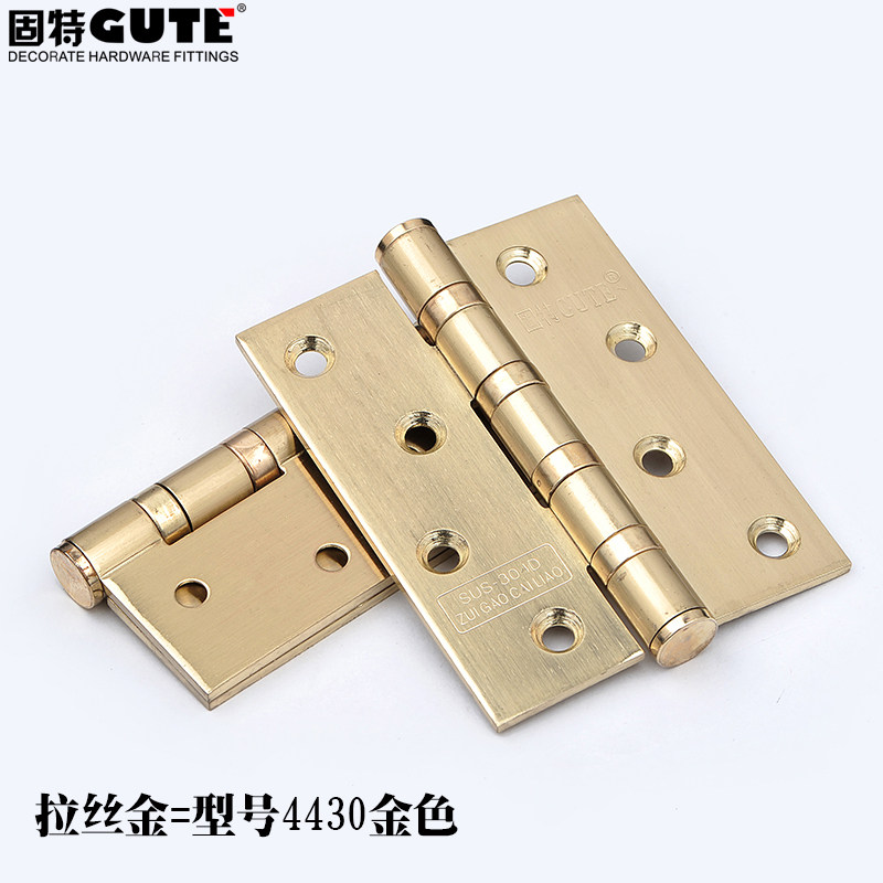 Solid hinge PVD gold wire drawing stainless steel hinge 4 inch 3mm Room door bearing 4430 hinge single sheet price