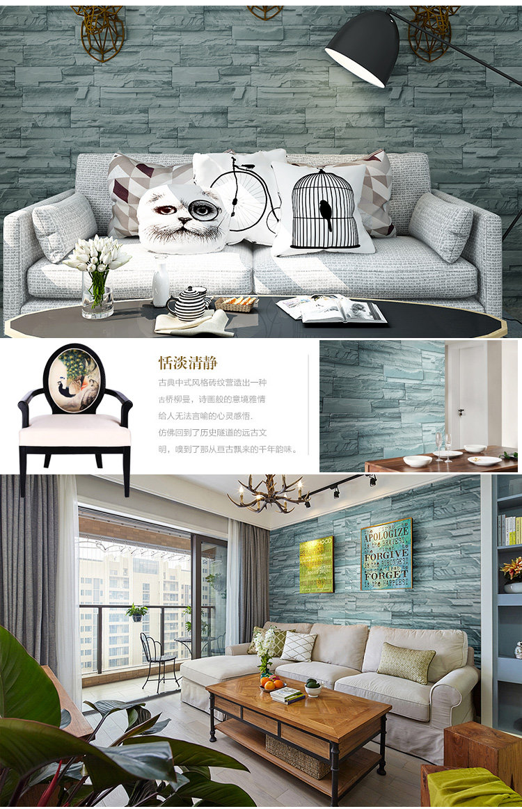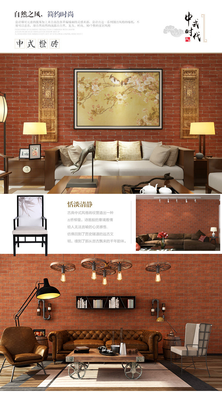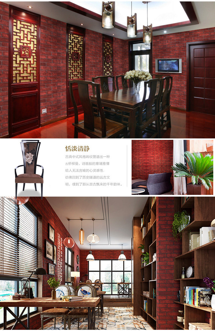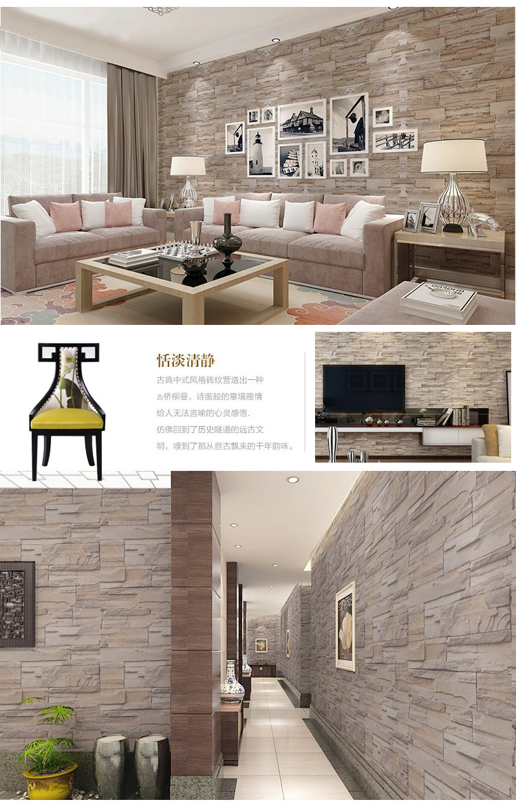 Retro brick with self-adhesive wallpaper wallpaper wall sticker TV background wall wallpaper red brick grey brick imitation ancient brick-and-mortar