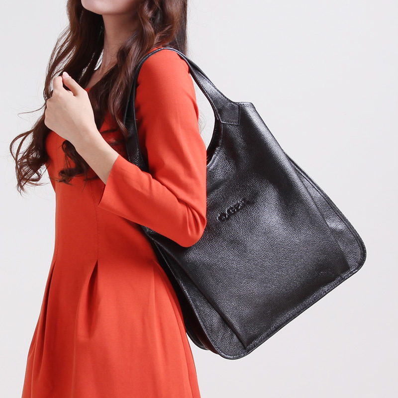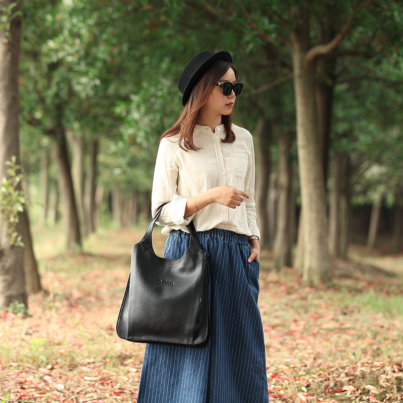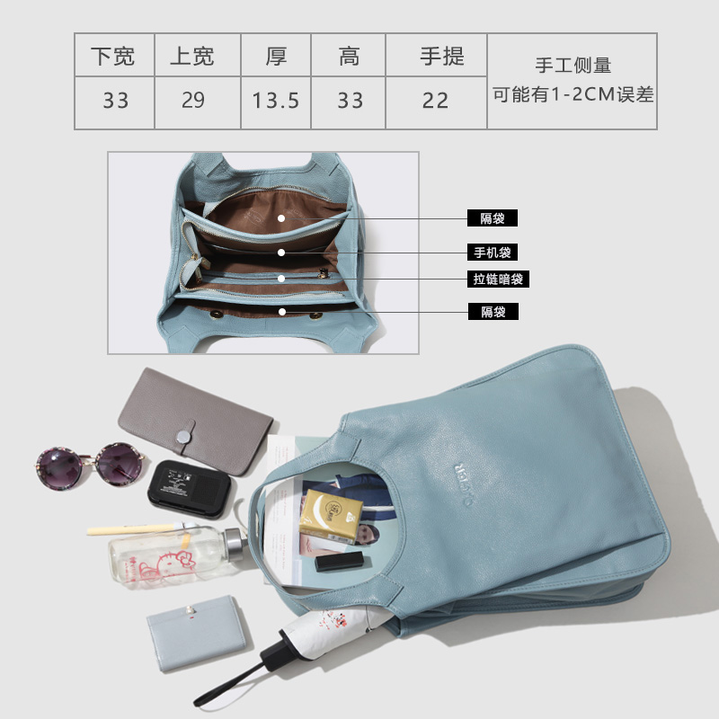 Qingge's new first-layer cowhide leather all-match large-capacity multi-compartment vertical single-shoulder large bag literary women's bag