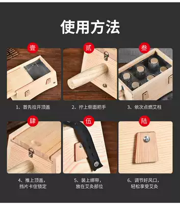 Moxibustion box wooden moxibustion household 6 six-hole wood box full body solid wooden abdomen Palace cold waist moxa box