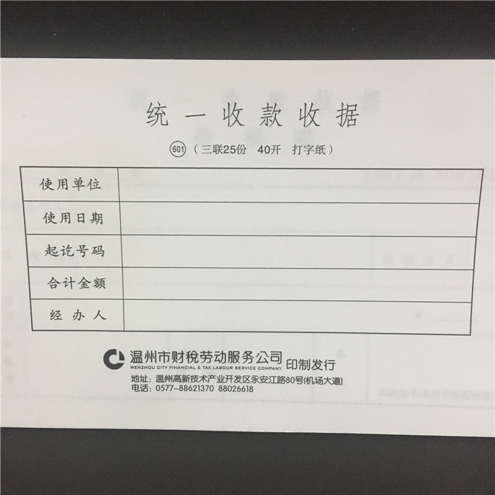 Bill document financial management unified collection receipt 601 triple 25 copies 40 open Wenzhou local tax special receipt