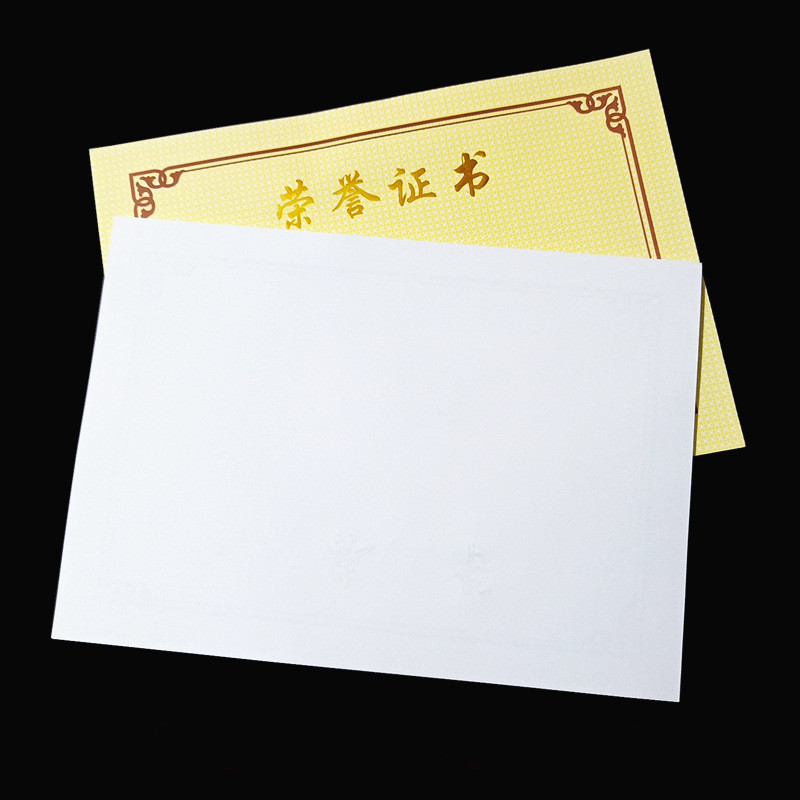 Yellow Honours Certificate Internal core paper 12K Blank award-shaped inner page paper 8K bronzed gold word award honorary certificate core