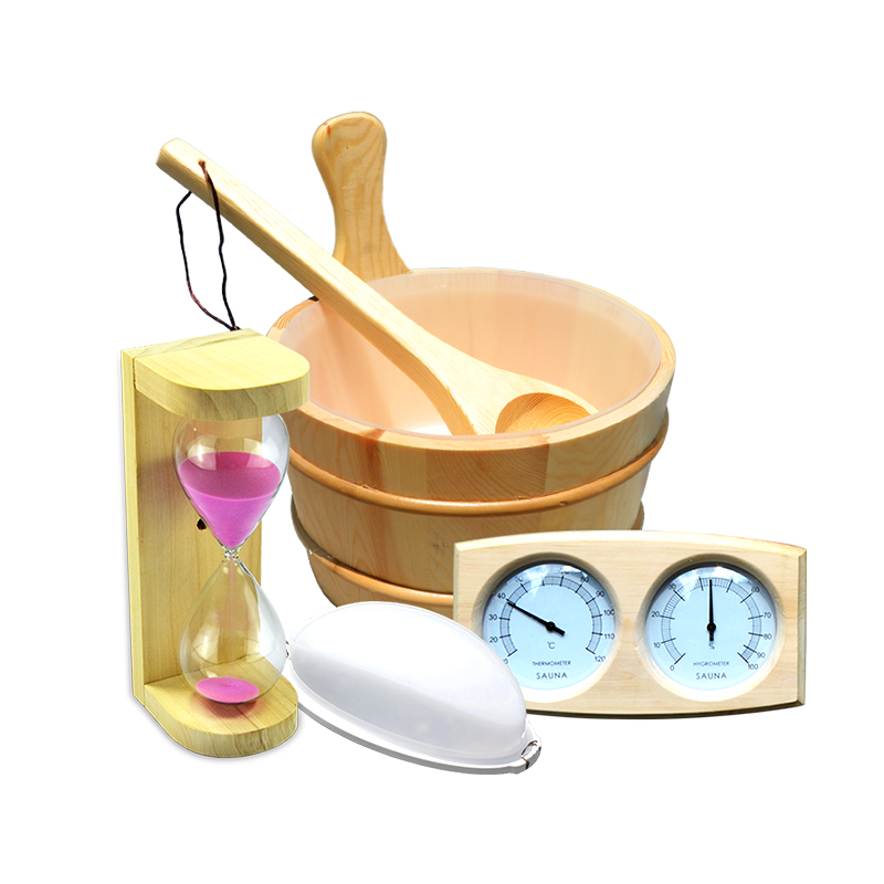 Sauna barrel wooden spoon set Kanalu wooden table thermometer hourglass explosion-proof lamp sauna steam room accessories