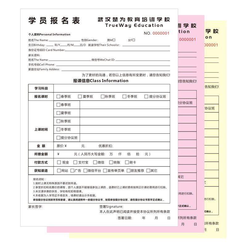 Education and training enrollment registration receipt receipt printing custom registration form carbonless copy delivery order custom