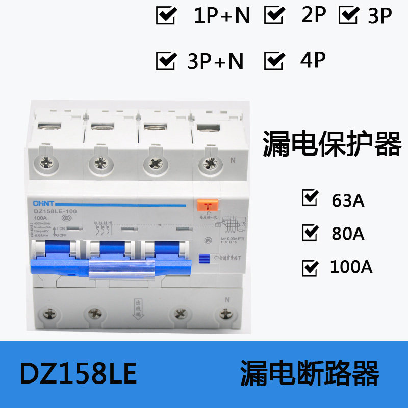 Positive Thai Drain DZ158LE 100A 80A 1P 1P 2P 2P 3P 3P 3P 4P leakage protection circuit breaker