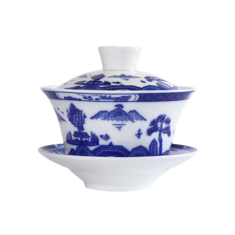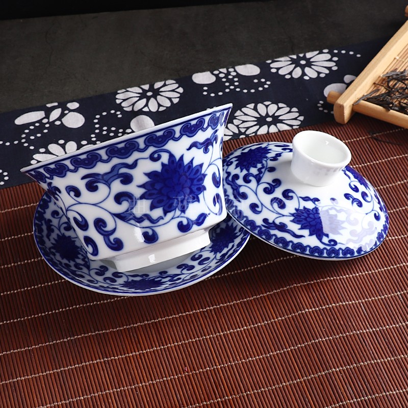 Jingdezhen ceramic mug green flower lid bowl tea cup porcelain horseshoe rice cup water cup 3-only cover bowl tea set-Taobao
