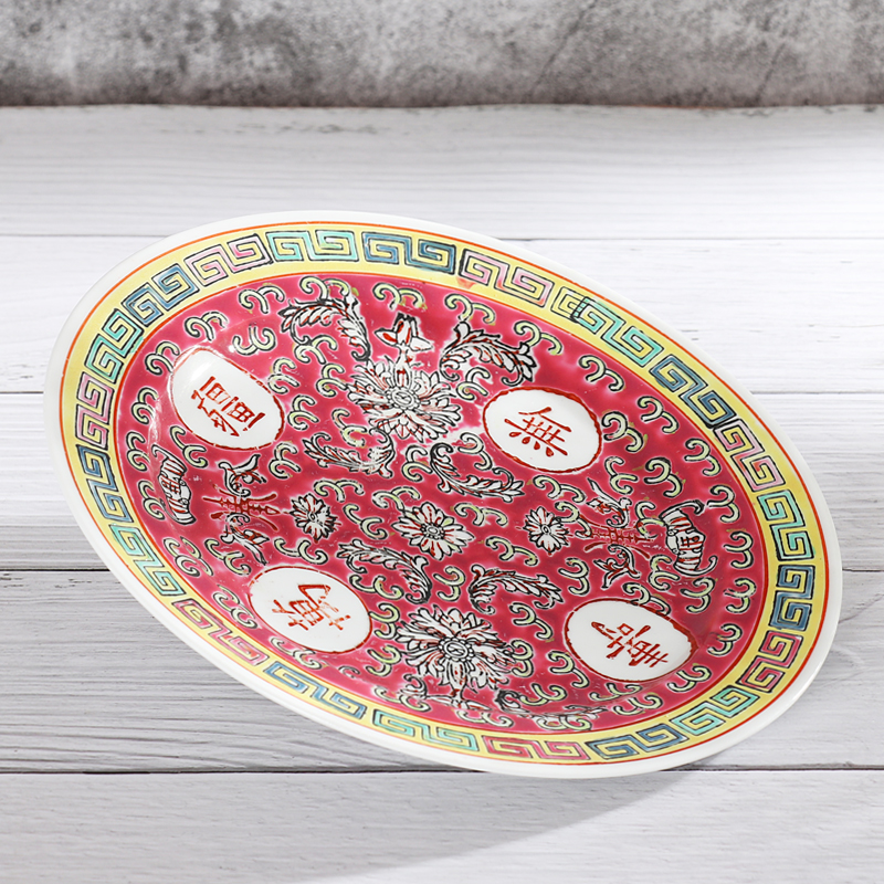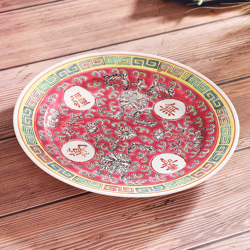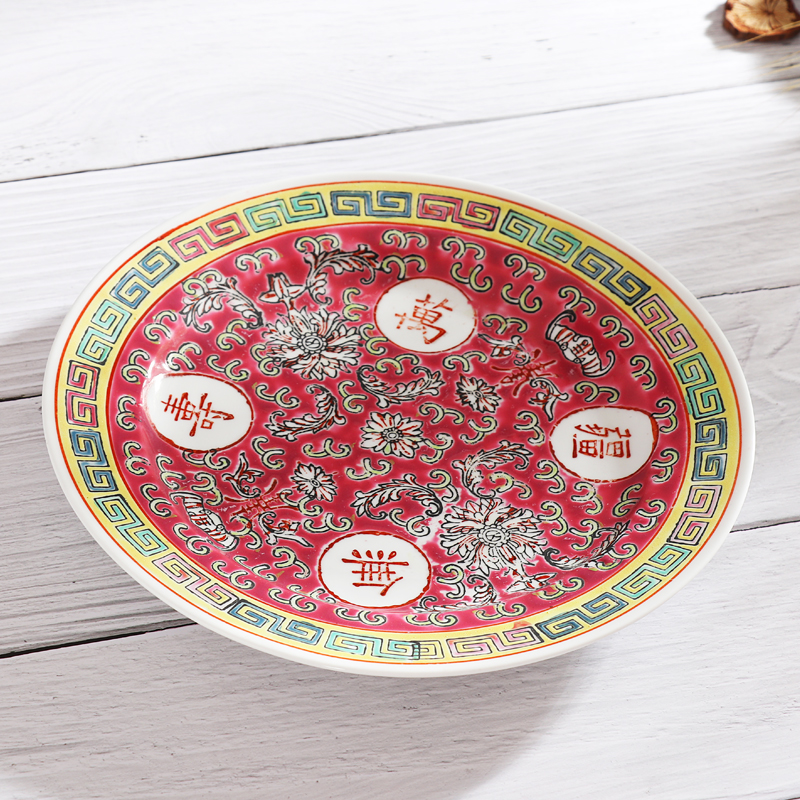 Jingdezhen Factory Goods ceramic Cultural Revolution Handpainted red Wanshou 8-inch flat disc decorated porcelain hanging disc-painted disc-Taobao