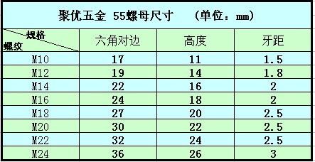 M8 (opposite 13 height 6)M10 (opposite 17 height 11)m12 (opposite 19 height 14)m14 (opposite 22 height 16)m16 (opposite 24 height