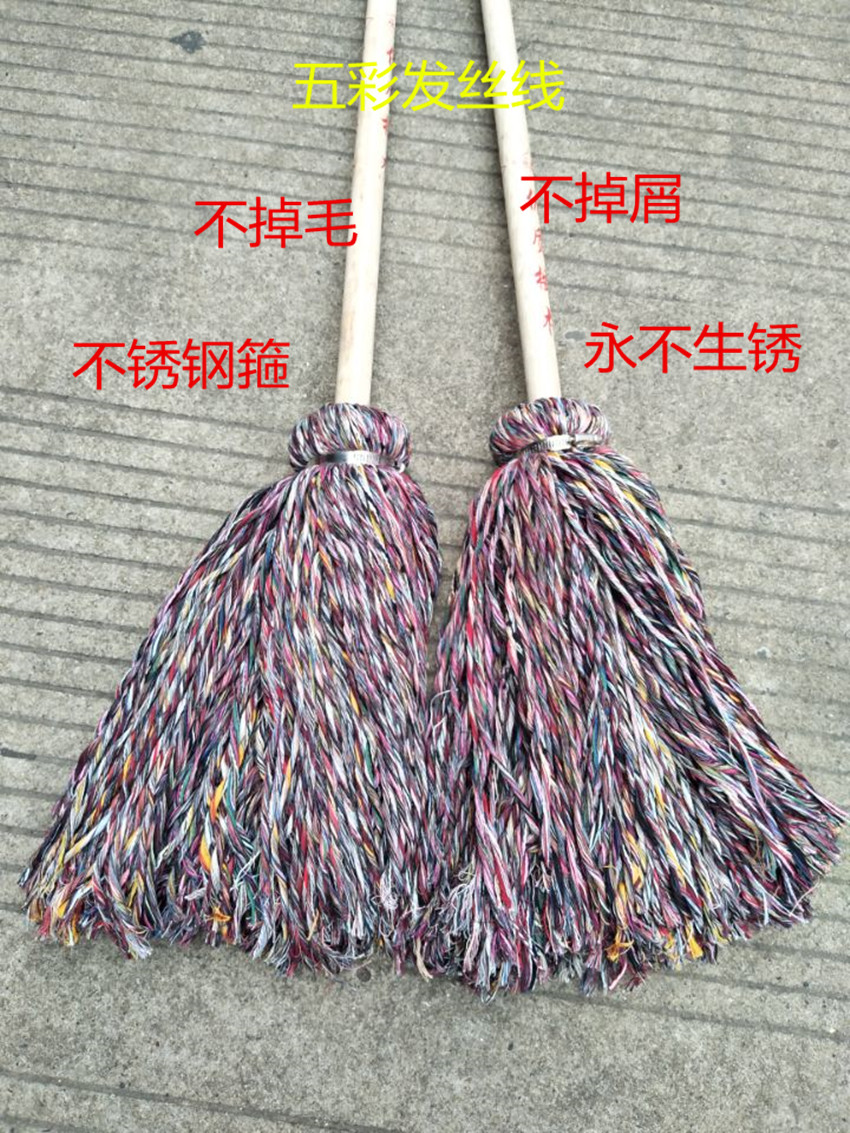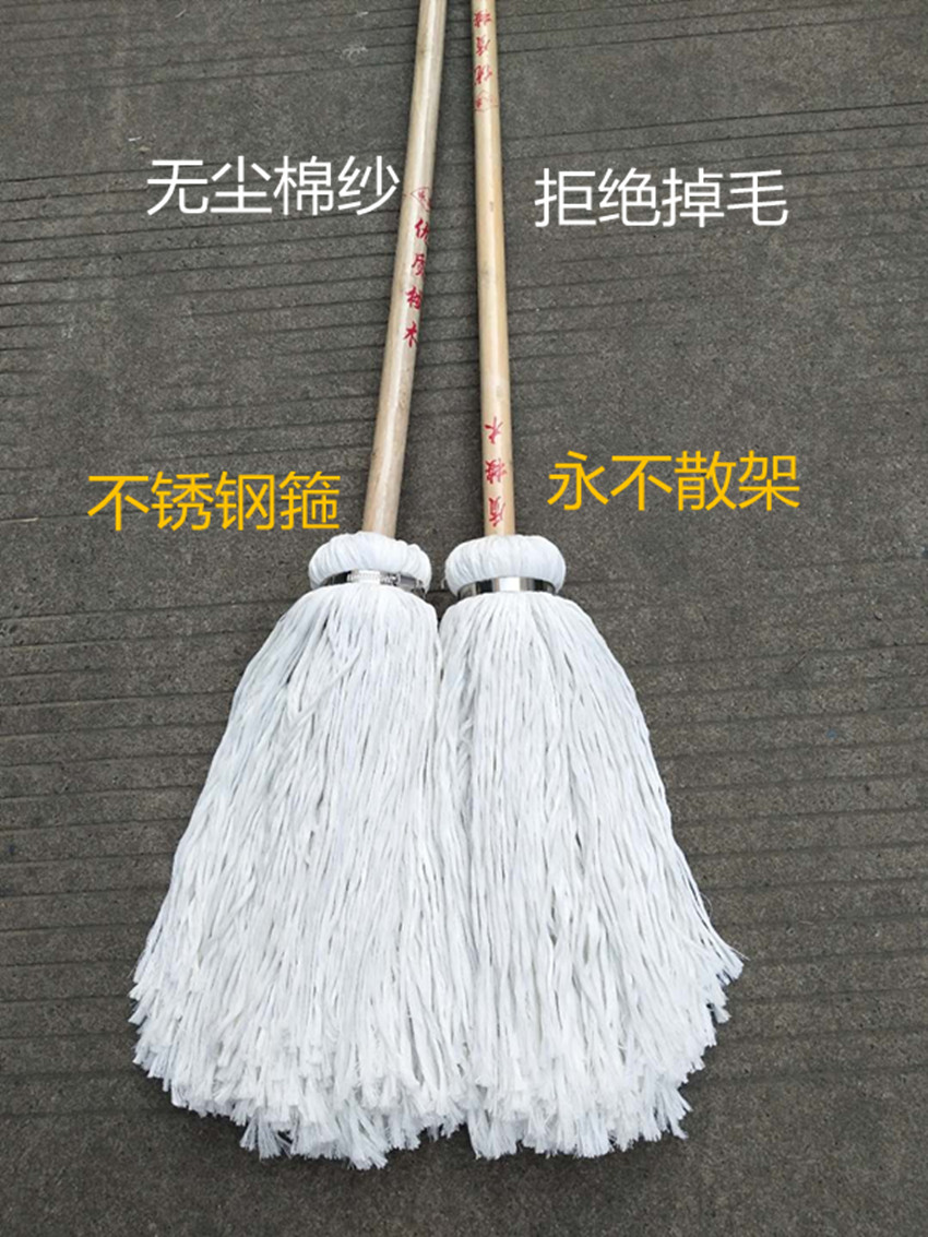 Two mop rods, two mop replacement heads, two catties, iron wire binding mops, two stainless steel hoop mops, two dust-free white line mops, two color line mops, two cotton mops, two