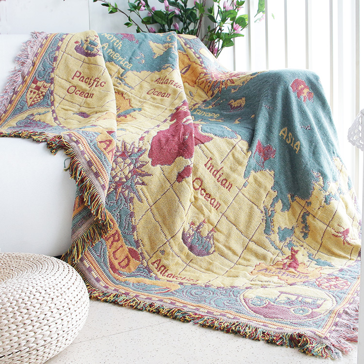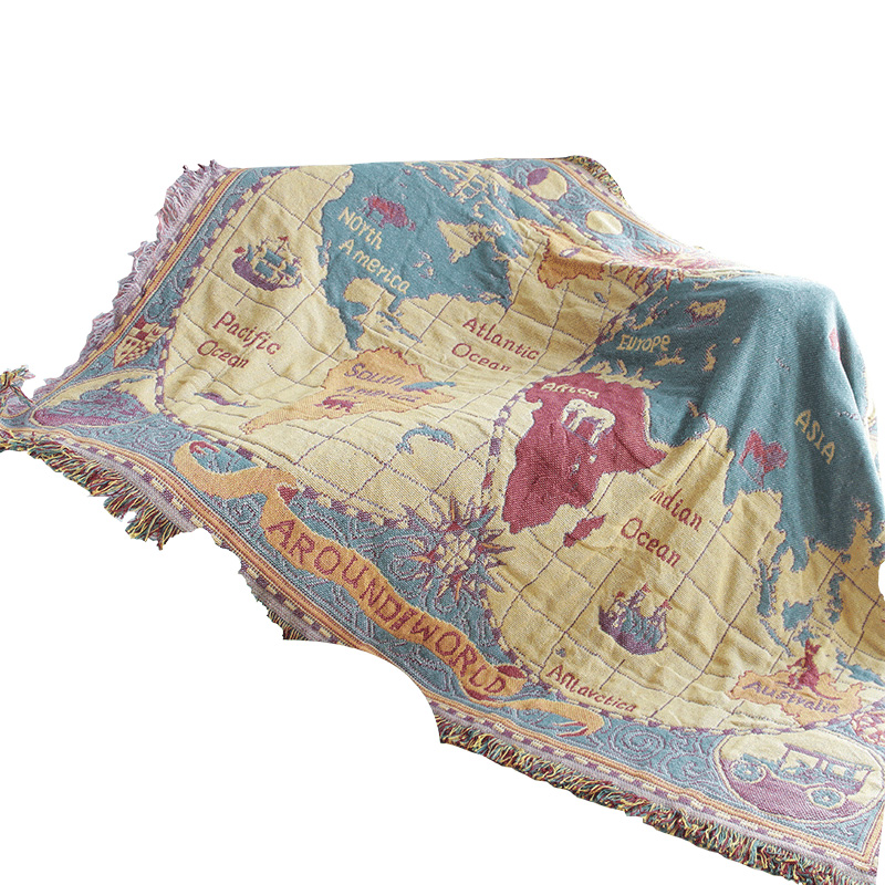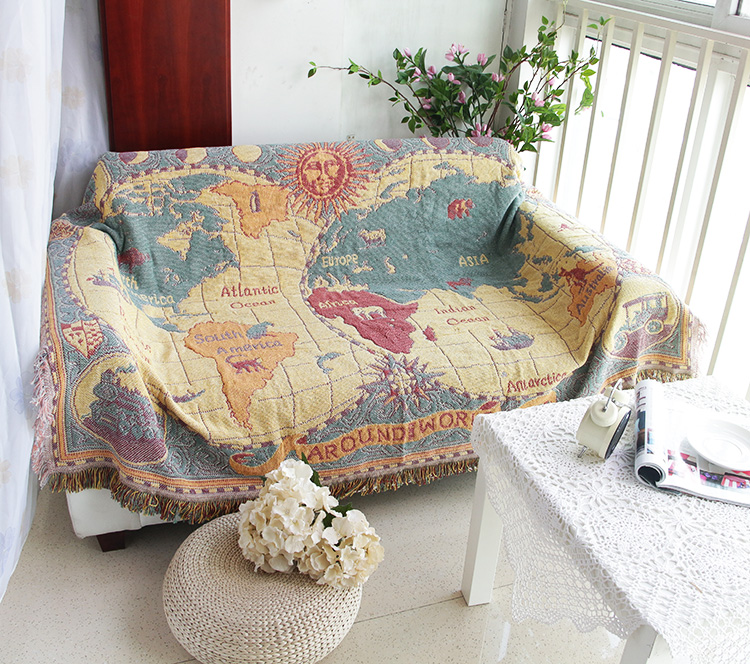 Living room soft carpet full cover sofa blanket towel American country world map line blanket tapestry dust cover cover